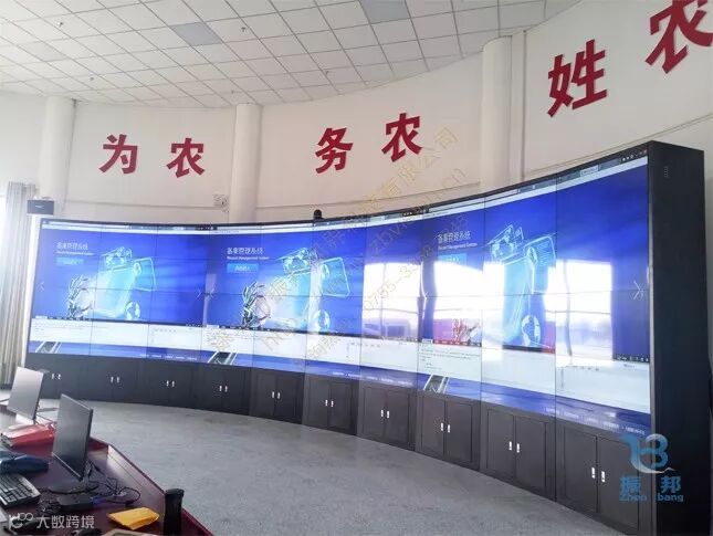 监控指挥室配备了4*10,40台超大型弧形拼接幕墙,使用DID高清液晶拼接屏组成超大画面,弧形结构设计合理利用现有场地,节约空间。