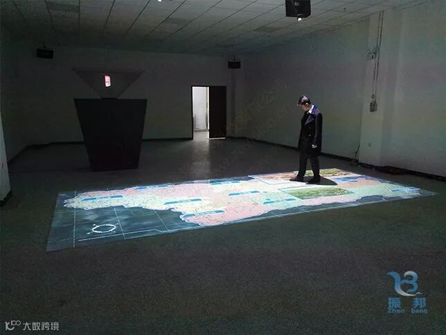 参观者进入互动区域,启动程序,薄雾散去展开一张固原市地图,地图热点上散布着每个区域的特色产品和文化,当踩中地图上的地名时就会出现当地的特色介绍,图文并茂,还可以播放视频。
