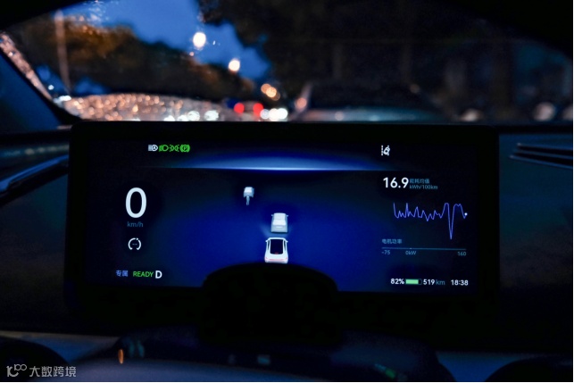 天空不作美,下班高峰遇上广州暴雨天气,开了雨刮,雨天路上刹车启动也多一些,减少了能量回收的机会,当然地面有水也会大大增加的轮胎和地面的摩擦力。