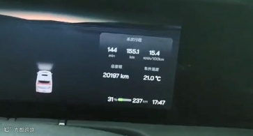 到天黑我看差不多了,也是沿着国道返程回家,到家时电量还有1%,停在家我就没有继续再开,打开暖气静置,看到续航到0%用手机记录,成功完成此次挑战赛。