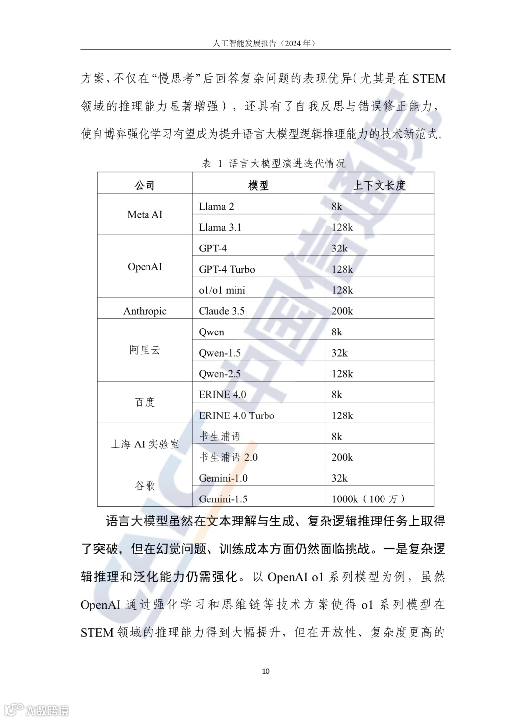 语言大模型:缩放定律驱动能力提升,上下文窗口长度扩展,知识密度增强,MoE架构提升推理计算效率,强化学习提升复杂推理能力。