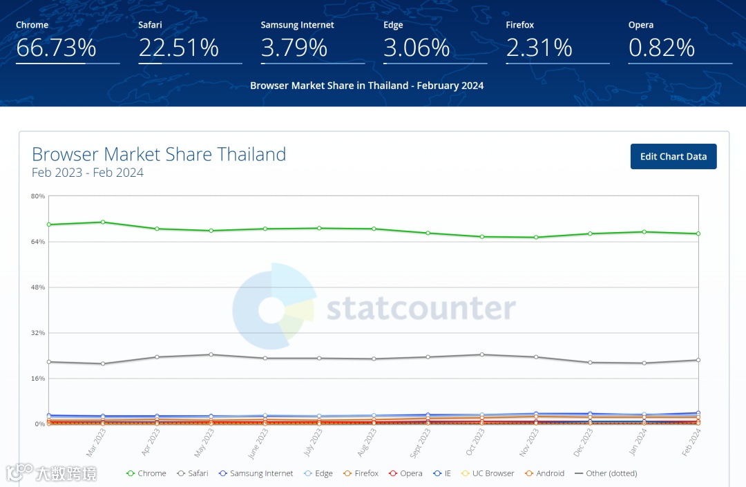 根据Simlarweb统计的泰国全行业搜索引擎市场占比数据情况得出: