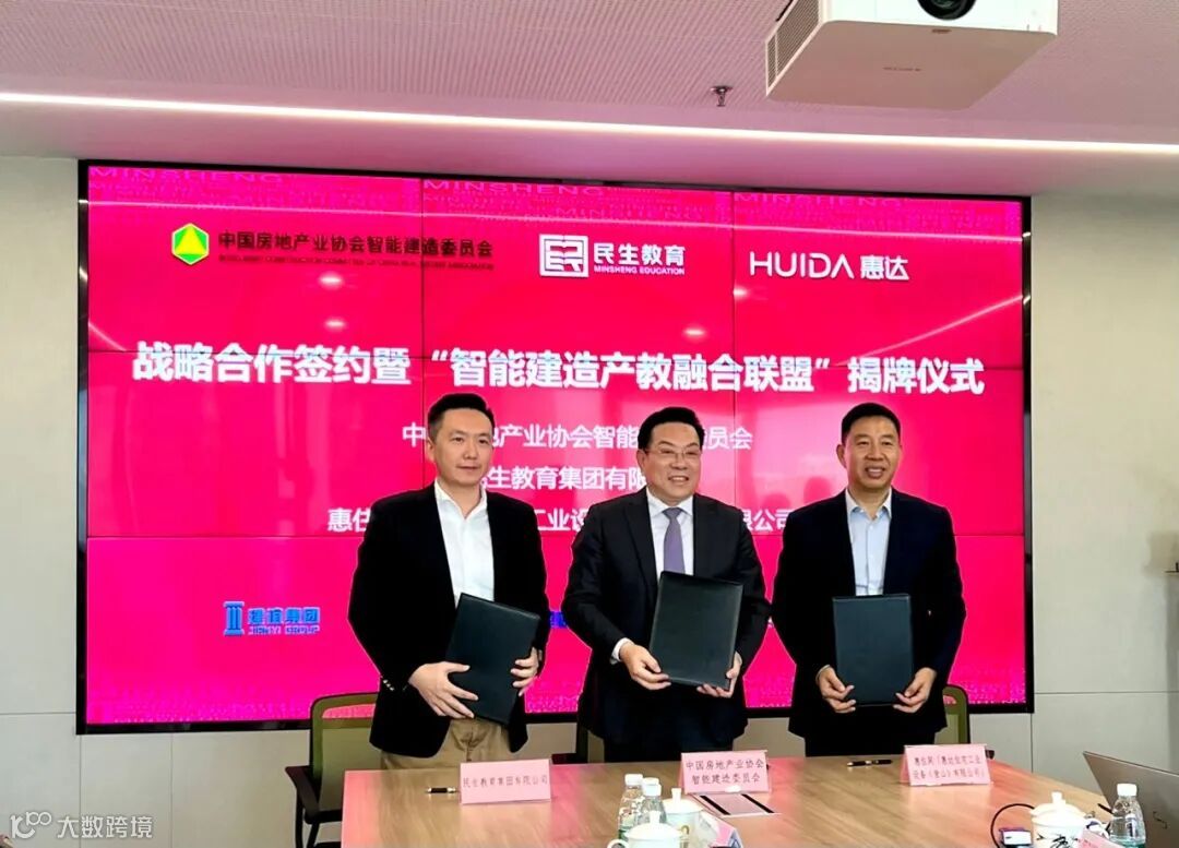 由中国房地产业协会智能建造委员会、民生教育集团有限公司、惠住网「惠达住宅工业设备(唐山)有限公司」共同发起成立“智能建造产教融合联盟”于10月19日上午在京组织签约仪式暨揭牌仪式。
