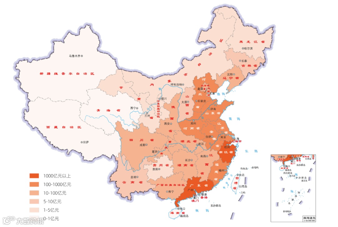 数字化产业带规模区域分布 (数据来源:阿里巴巴 1688 平台)