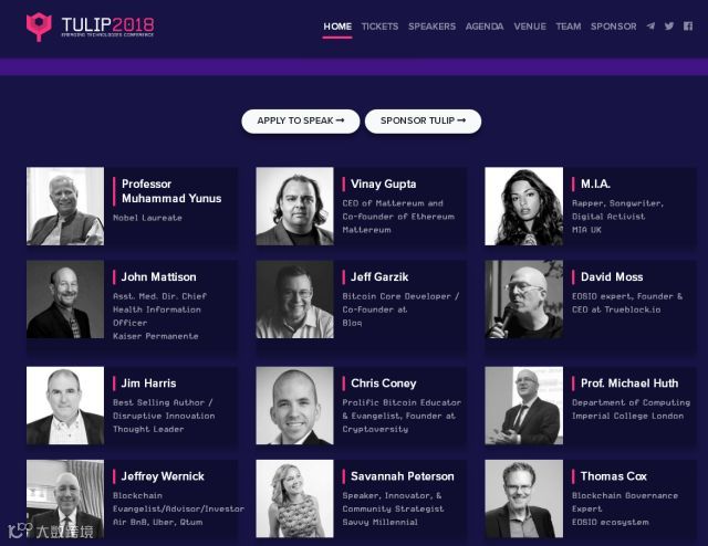 “Tulip郁金香”国际区块链大会致力于区块链技术以及相关应用的产业化转型,旨在激发、连接和推动区块链行业的发展,安排组织了包括诺奖得主在内的众多业内大咖、知名学者、投资企业、区块链生产商、实战场景开发团队等参加的逾50场会议,涉及28个议题,目标是解决区块链技术面临的行业难题,重塑区块链技术应用及未来发展。”Tulip郁金香“大会被业内专家评价为近几年来最具技术含量的区块链行业技术峰会,与微软全球开发者大会、苹果开发者大会、谷歌I / O大会同等级别,并为所有合作伙伴提供信息交流的平台。