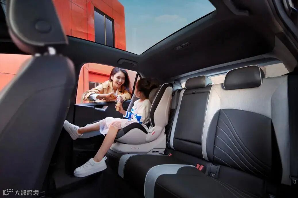 直观一些来说,如果是三个正常身材的成年男性同时坐在后排座椅上,实际上并不会觉得太过拥挤,腿部空间依旧宽敞,甚至可以翘二郎腿。头顶距离车顶也有着好几根手指的空余,再加上配备了1.37M²的全景天窗,可以带来十分通透的空间感,坐在车内也不会觉得压抑。当然,全车坐满的情况可能并不常见,正常三两个人出行或者带着孩子出行绝对宽敞够用。另外,后备箱容积达到385~1267L,底部有隐藏式地板拓展空间,带来更宽敞舒适的驾乘空间。