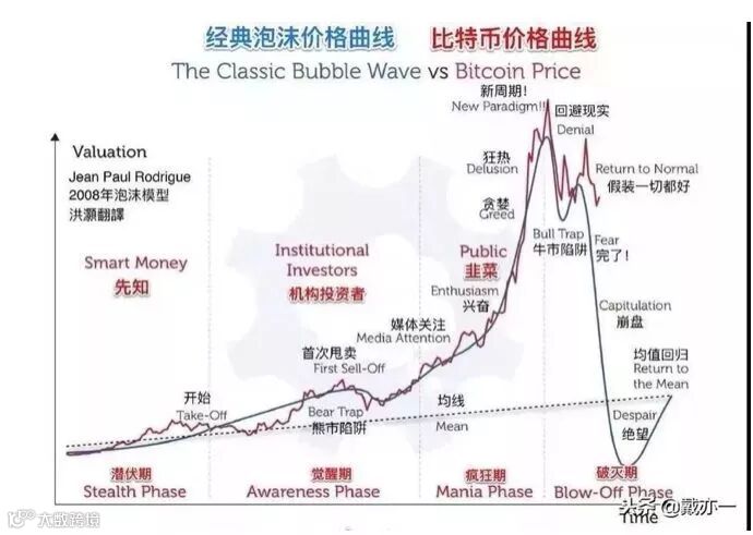 其实,这也是经典价格曲线走势图,所有的资产价格也符合这个趋势,比如比特币: