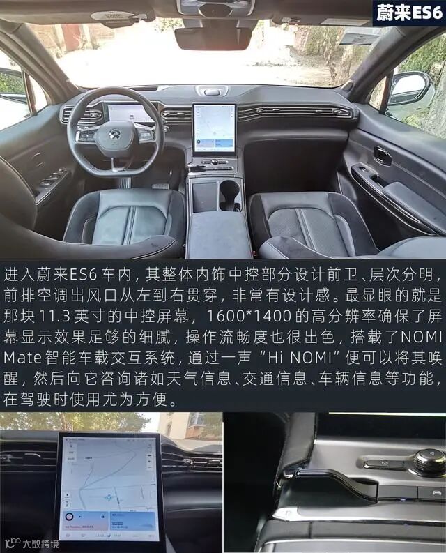 在蔚来ES6上看不到很多的实体按键,当一坐上车,车就会通电启动,只需要说一声“嗨,NOMI“,就能唤醒蔚来ES6的人机交互功能。