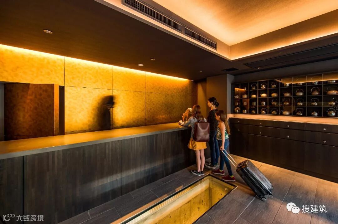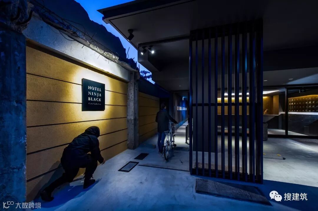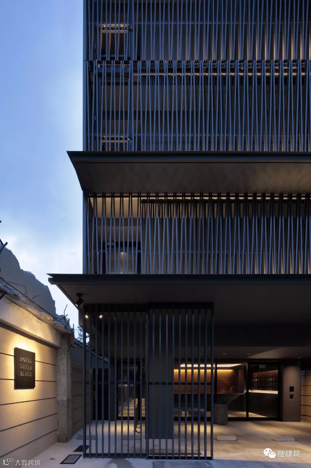 每个百叶窗的一面都涂成棕色,另一面涂成黑色,这样当你从东面走进酒店时,立面看起来是棕色的,但是当你到达时,棕色逐渐消失,整个建筑看起来是黑色的。室内设计是围绕“黑暗”的概念,尽可能多地设计为现代酒店。游客在这家酒店体验忍者的把戏。