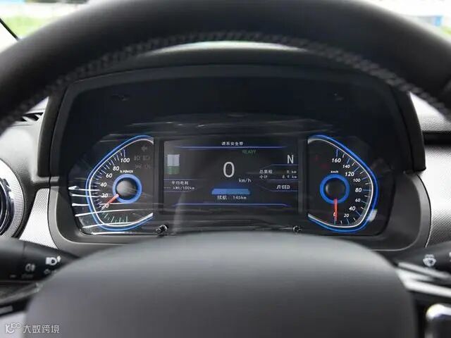 内饰方面,整体风格较为简洁,配备了三辐式多功能方向盘、10英寸悬浮式中控显示屏以及液晶仪表盘。同时,电动车上常见的旋钮式换挡方式也出现在了该车身上。