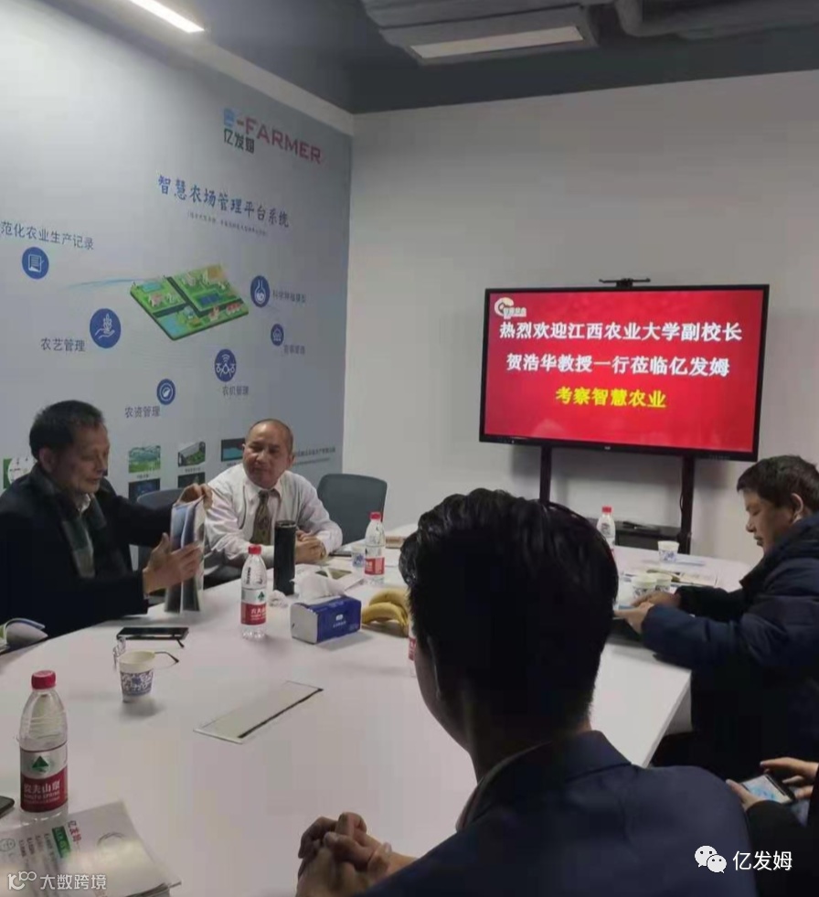 1月25日下午,为全面推进乡村振兴,大力发展数字农业,江西农业大学副校长贺浩华教授、傅军如教授、贺晓鹏教授、边建民博士等专家一行莅临亿发姆公司考察!考察期间进行了产品展示、亿发姆数字农业业务讲解,会议洽谈等。