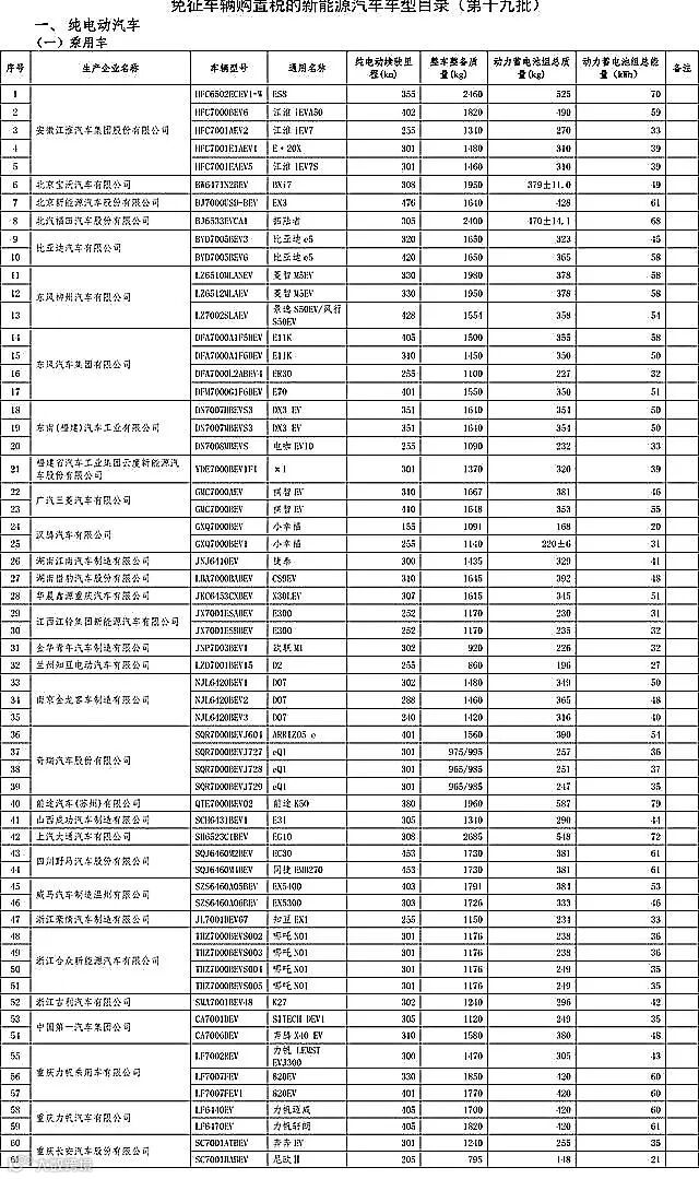 2018年7月31日,工信部发布第十九批《免征车辆购置税的新能源汽车车型目录》,此批目录共含有343款车型,在乘用车领域包括70款新能源汽车。从这张表格中我们看到了很多款明星车型和消费者关注度很高的车型。下面我们来详细分析一下此次进入免征购置税清单的新能源车型。