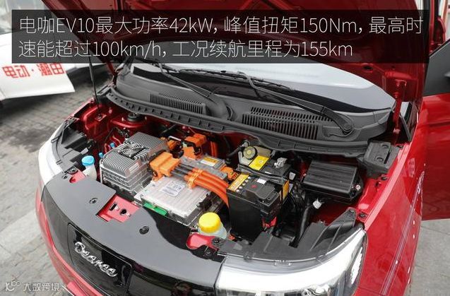 EV10充满电的最大续航能达到155公里,在快充模式下电池容量从0充到80%需要48分钟,最高时速能超过100km/h。 电咖还给EV10提供了整车3年或12万公里的质保,核心零部件质保期为8年或12万公里,核心零部件包括电池、电控和电机系统。动力上电咖EV10使用了一台三相调速永磁同步电动机,最大功率57马力(能输出30秒),额定功率29马力,最大扭矩150N·m。