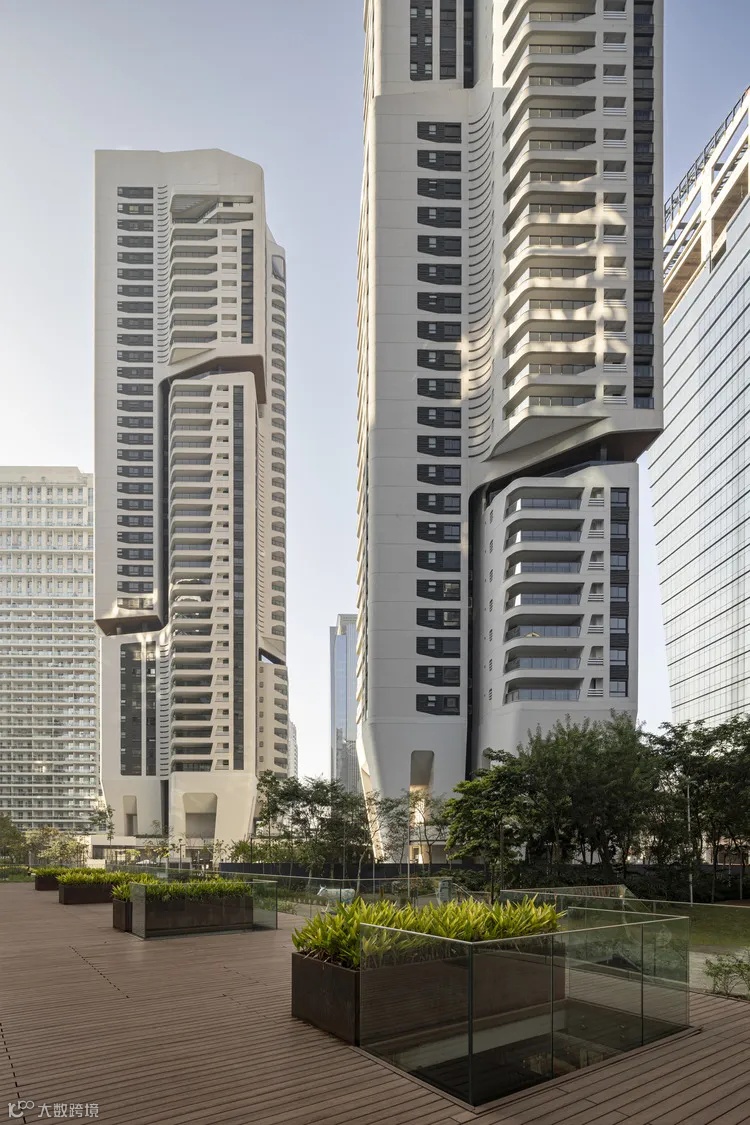 L形塔楼则作为O形塔楼的有力背景。其背面设计灵感来源于松树,而正面则受到睡莲的启发。这种“亲自然连接”促进了福祉与可持续性,加强了人与自然的深层联系。项目的一大创新是住宅空间的灵活布局。
