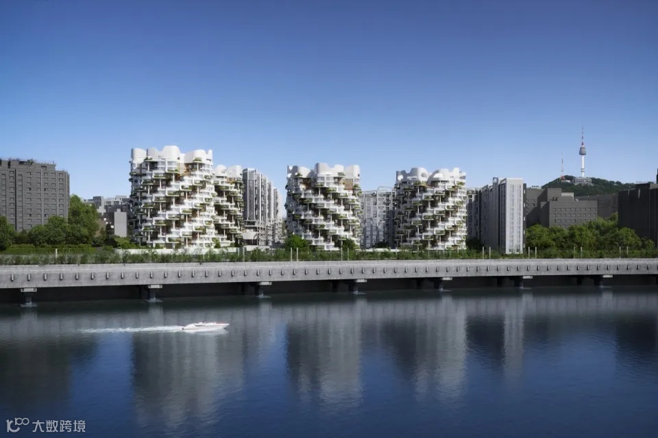 项目外立面的设计灵感来源于象征汉江的睡莲以及被认为已消失却在首尔重新出现的白松。这种亲自然的设计方法创造了视觉上引人注目且与环境和谐统一的外立面,彰显了项目在城市生活与自然美景融合方面的承诺。