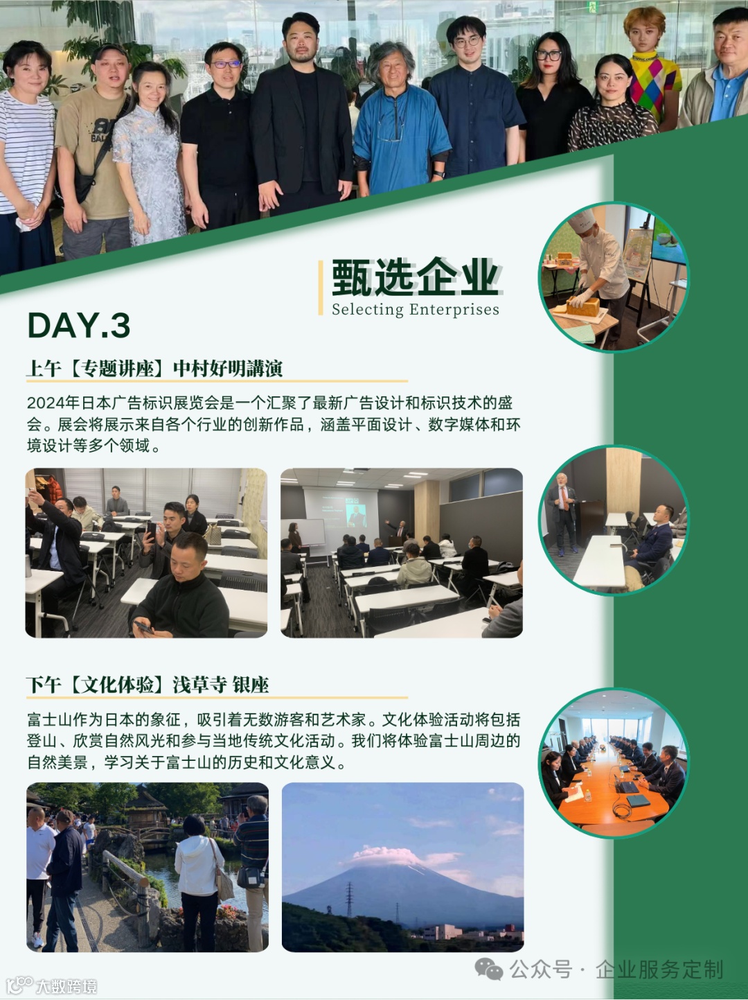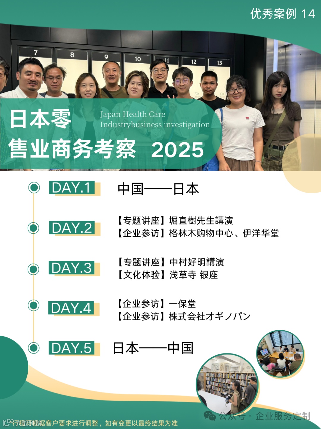 2024年8月下旬我司组织安排的以下6个日本商务考察主题各具特色,意义深远,有助于提升考察者的专业素养、国际视野和创新能力,也有助于推动中日之间的交流与合作。
