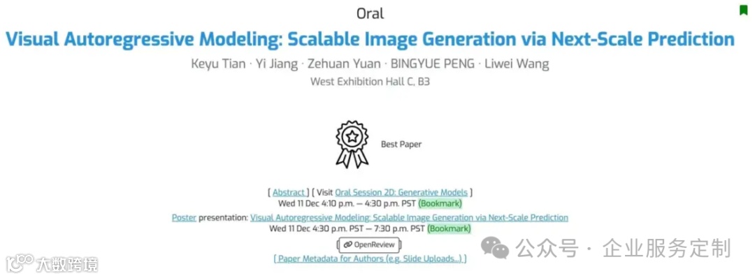 就在外界以为故事将以悲剧收场时,戏剧性的一幕发生了。田柯宇及其合作者提交给NeurIPS 2024的论文《视觉自回归建模:通过下一尺度预测实现可扩展的图像生成》被评为最佳论文之一。该研究提出了一种名为VAR(Visual Autoregressive Modeling)的新方法,首次使得GPT风格的自回归模型在图像生成方面超越了扩散模型,为计算机视觉领域带来了新的突破。