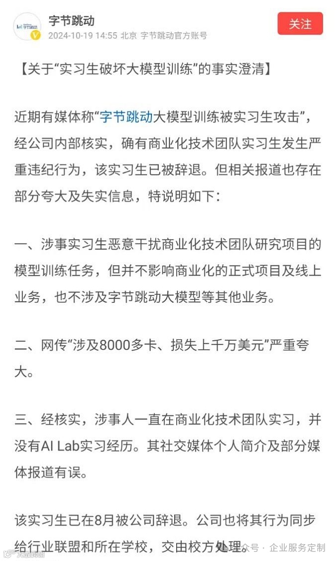 字节跳动对此高度重视,迅速解雇了田柯宇,并将其行为上报至其就读学校及相关行业联盟。但在事件处理期间,田柯宇多次对外否认,称攻击模型训练任务的不是自己,而是别的实习生,甚至报警称遭到造谣。考虑到田柯宇完全没有意识到错误,且涉事行为已触犯公司安全红线,但考虑到其未认识到错误且触犯了公司安全红线,字节最终决定向法院提起诉讼,要求赔偿损失并公开道歉。北京市海淀区人民法院正式受理此案,标志着这起事件进入了司法程序。