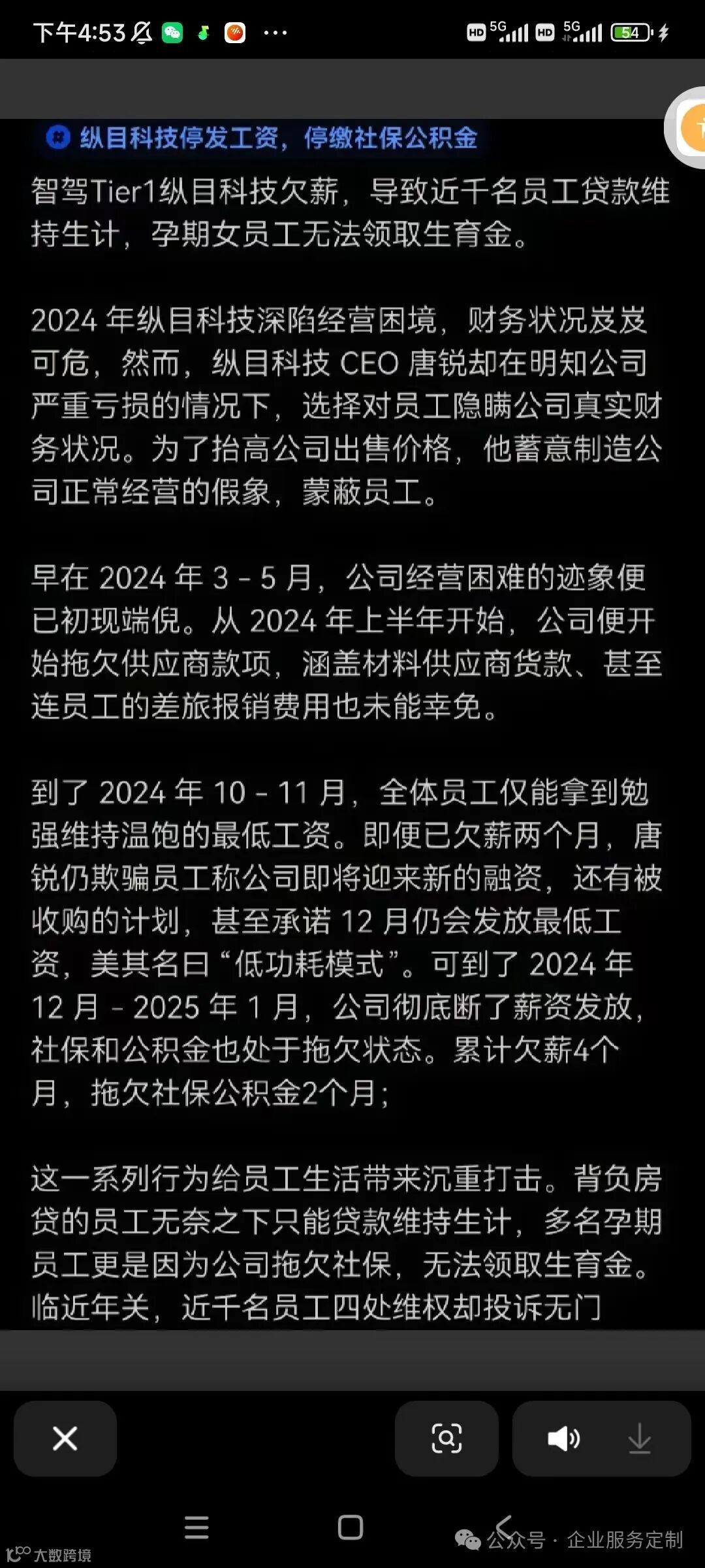 回顾过去几个月,纵目科技一直在努力寻求解决方案以应对财务危机。尽管曾多次尝试通过融资和并购解决资金链紧张的问题,但至今未能取得实质性进展。去年底至今年初,纵目科技经历了工资延迟发放、社保停缴等系列事件,导致员工不满情绪高涨,并纷纷选择离职。