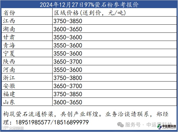 萤石粉报盘:持稳