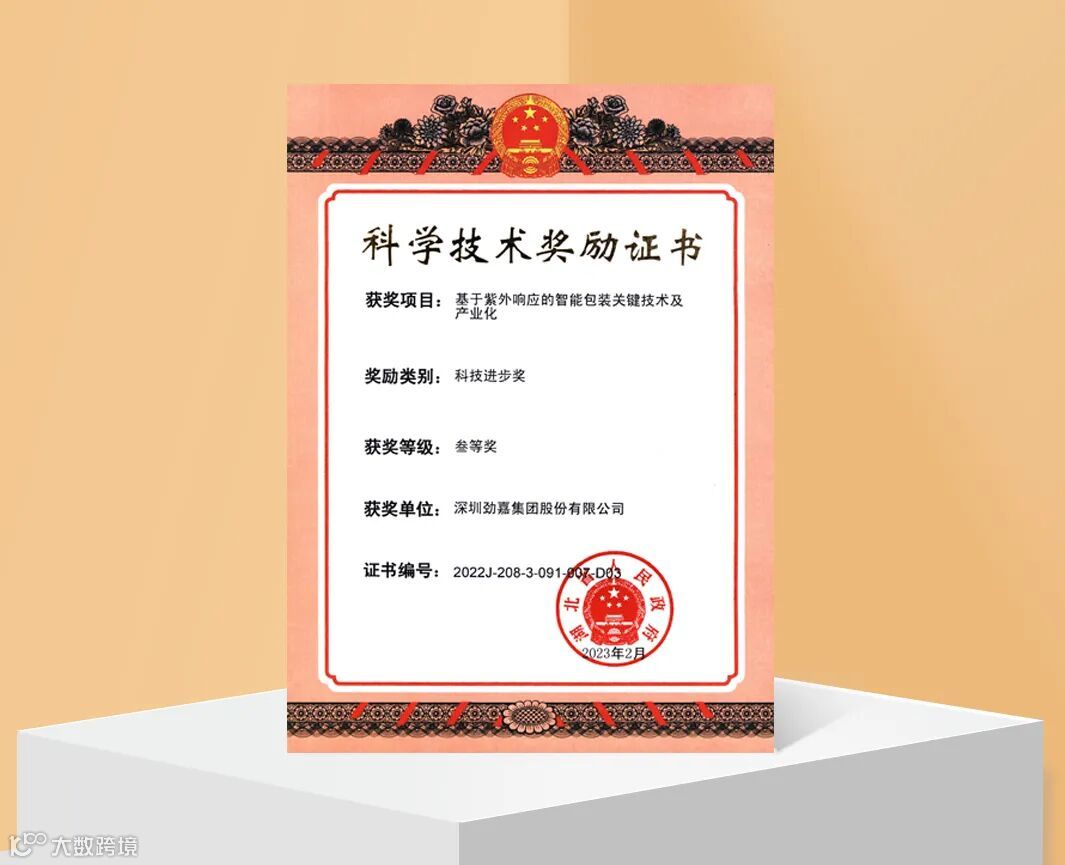 导读:2023年2月,深圳劲嘉集团及其全资子公司安徽安泰公司,联合武汉工程大学和多家企业,研发的“基于紫外响应的智能包装关键技术及产业化”项目,获得湖北省科技进步三等奖。