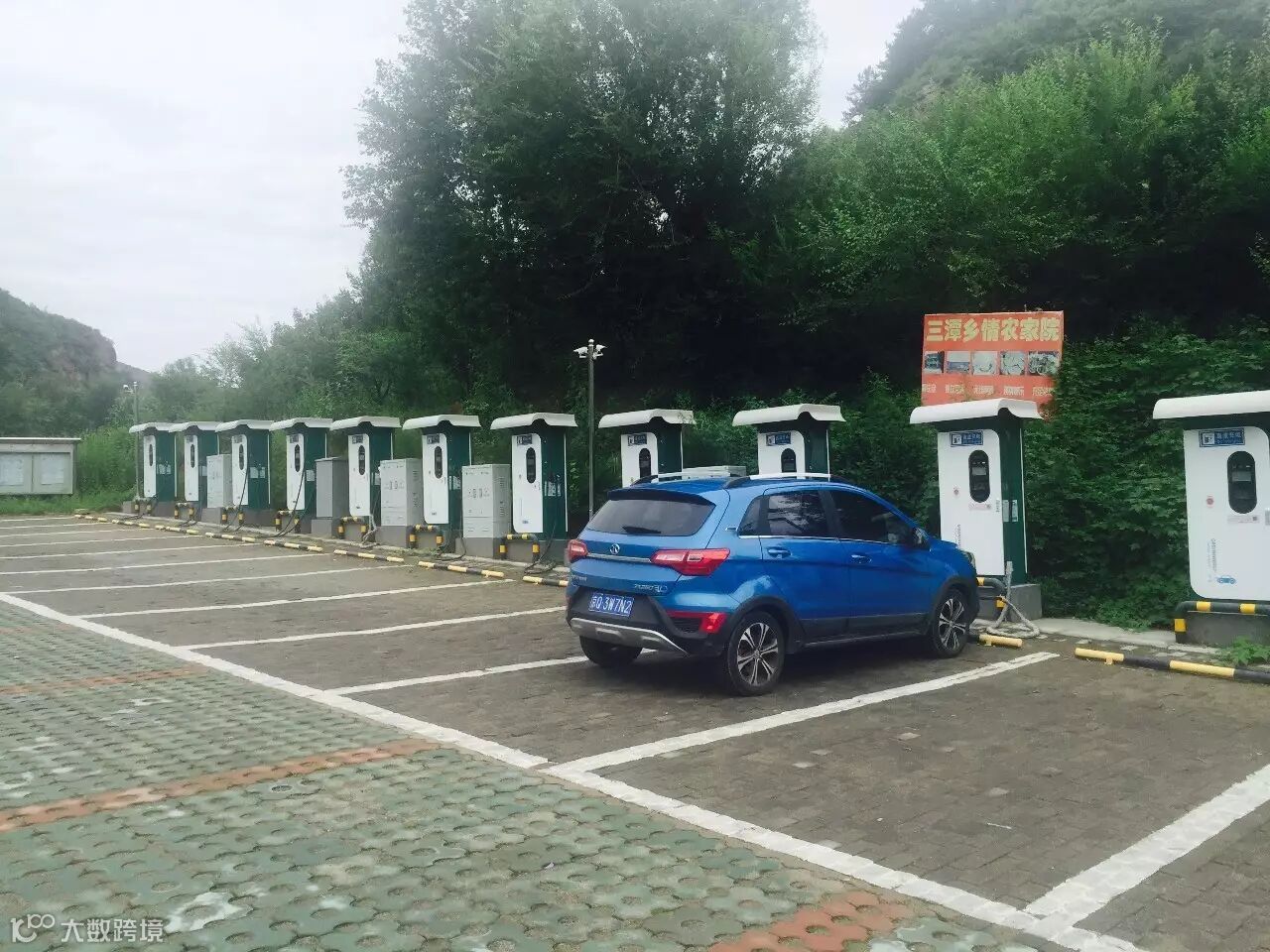 几乎满电且作为拍摄车的2台EX260,用来比对EU400的电耗横向比对用。笔者看了一下非周末出于高峰的百葛服务区,共有5台电动汽车,其中2台北汽EU260、1台比亚迪e5、1台江淮iEV4以及1台腾势300。