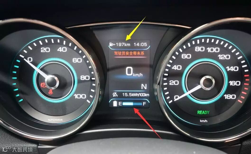 黄色箭头:续航里程197公里