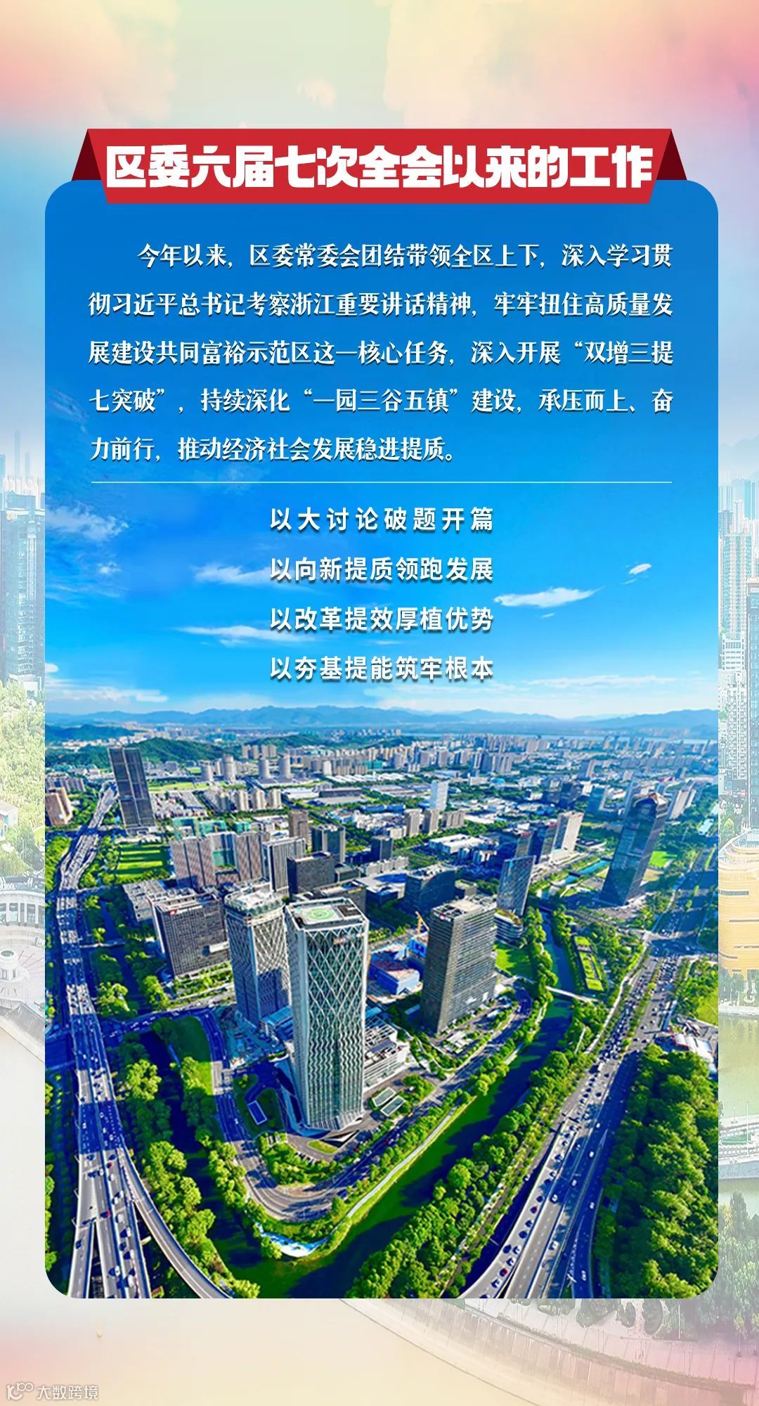 今天上午,区委六届八次全体(扩大)会议举行,总结区委六届七次全会以来的工作,研究部署下半年工作,动员全区上下创新发展增动能、实干争先增才能,高质量完成年度目标任务,全力打好“十四五”收官战,奋力推动创新滨江建设开新局谱新篇,为全省高质量发展建设共同富裕示范区贡献高新力量。全会有哪些干货?一起来划重点!