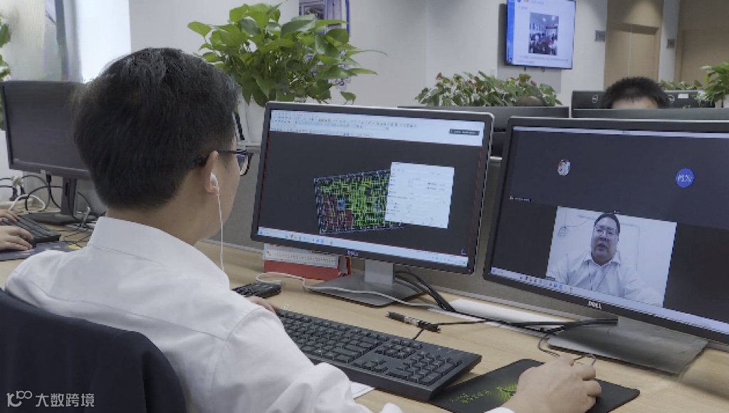 ▲与外籍工程师沟通交流(右一)