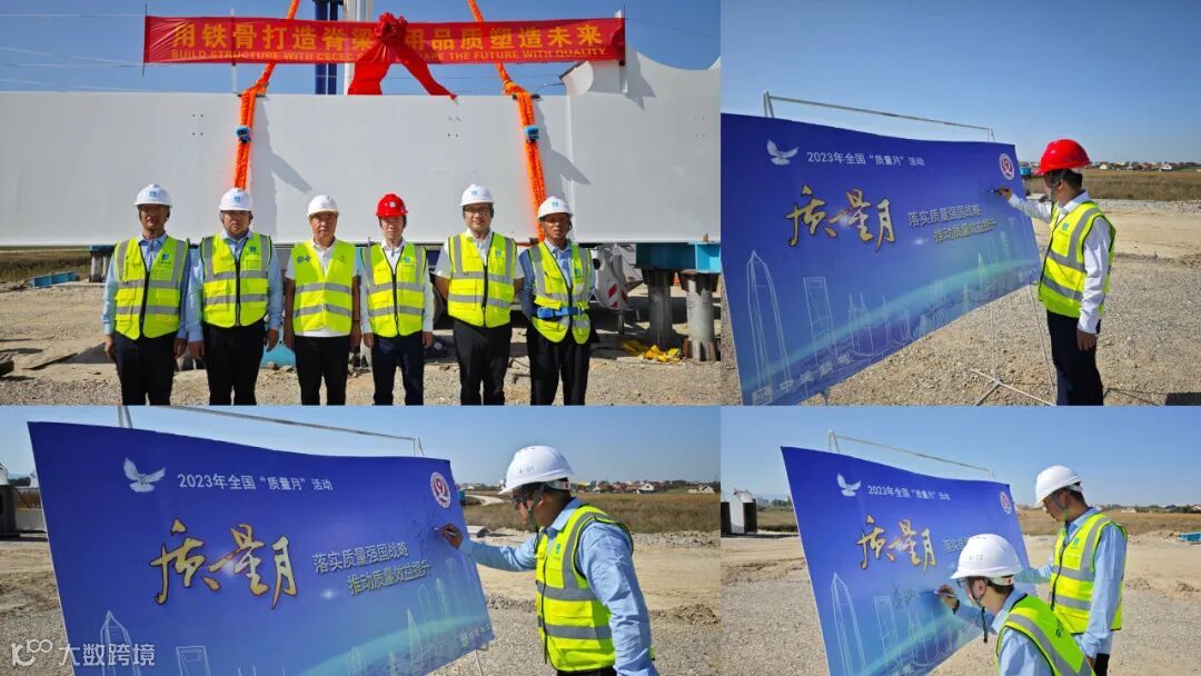开吊仪式现场,项目部同步开展了“质量月”活动启动仪式,以“落实质量强国战略 推动质量效益提升”精神为牵引,树立“用铁骨打造脊梁,用品质塑造未来”的精神,誓要打造塞国钢构精品。