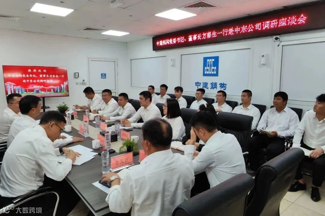 近日,中建科工党委常委、副总经理兼中建钢构党委书记、董事长方春生赴中建钢构中东公司调研,中建钢构党委委员、副总经理马帅,中建钢构(华南)生产专务吕志珍陪同调研。
