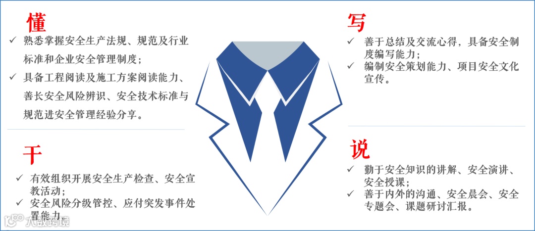 此次“安全工程师实训班”围绕“懂、干、写、说”四个维度能力提升,并结合安全生产基础课、管理课、技术课、实践课四类课程开展编排,力达“以学促用,学用结合”。