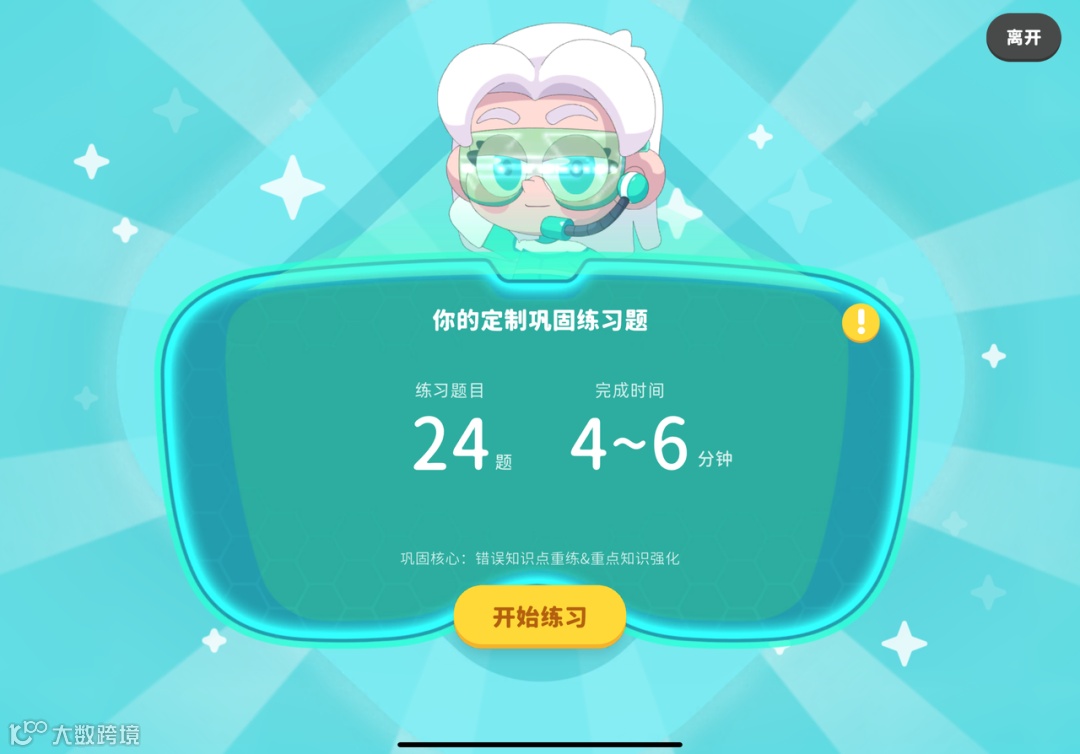 每节课结束后,AI 系统会通过 “Brainy Insight” 对孩子的课堂互动数据进行全面分析,包括每个知识点的掌握情况、每次互动任务的表现等。根据分析结果,AI 会为孩子量身定制巩固练习题,题目类型涵盖错误知识重练和重点知识强化,一般为 20-23 题,预计完成时间仅需 5-8 分钟。