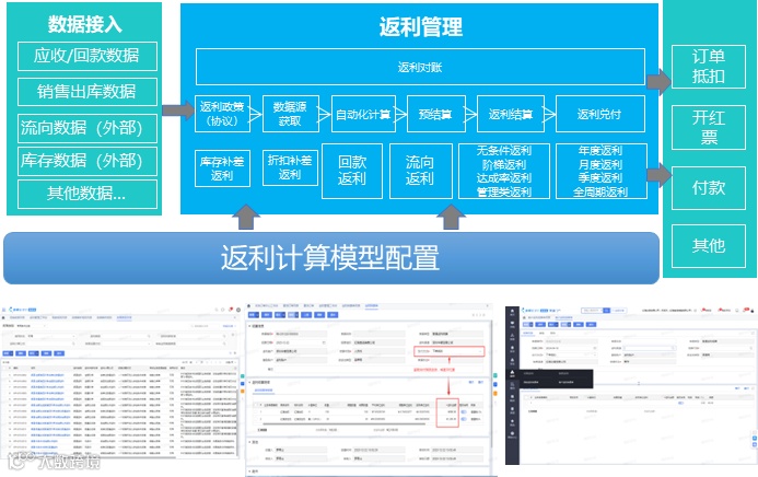 ● 可配置的返利取数规则,如按出库、订单、应收计算。支持多种政策类型,如阶梯、达成率、无条件