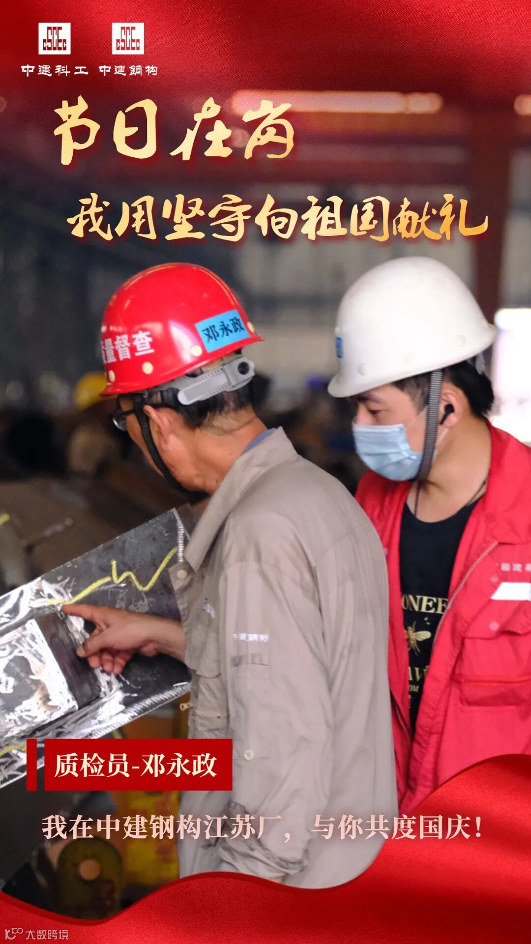 邓永政日常到车间检查构件焊缝质量,给不合格的地方开具整改单。今年国庆,他像往年一样,继续在质检岗位上,守住质量的阵地,确保构件质量100%合格。正因为有像他一样的坚守,质量更有保障。