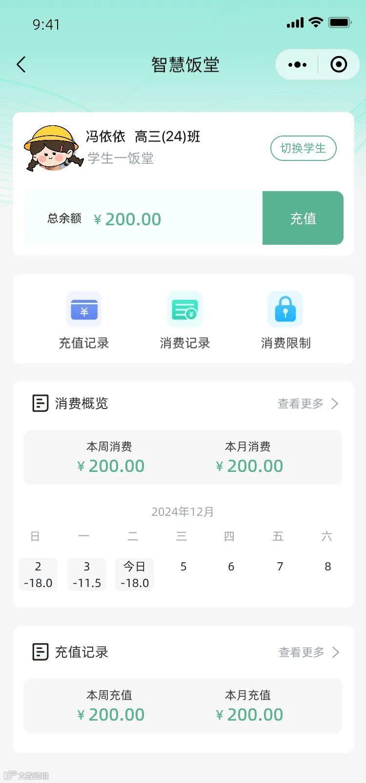 解决家长无法实时监管孩子校园消费情况 |