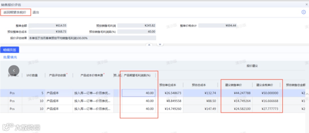销售利润评估可以根据物料BOM子项成本汇总算出报价物料的总成本与报价价格进行比较,分析出商品的预估利润;如果是外购商品,可以根据采购成本与报价价格进行比较,分析商品的预估利润;也可以录入希望本商品的销售预利润,根据系统成本取数,算出合理报价;也可以根据各分录的报价与成本,算出整单的预估利润,为销售业务源头单据提供报价利润评估、实现根据产品材料成本信息,指导业务员按预估利润对商品进行报价。