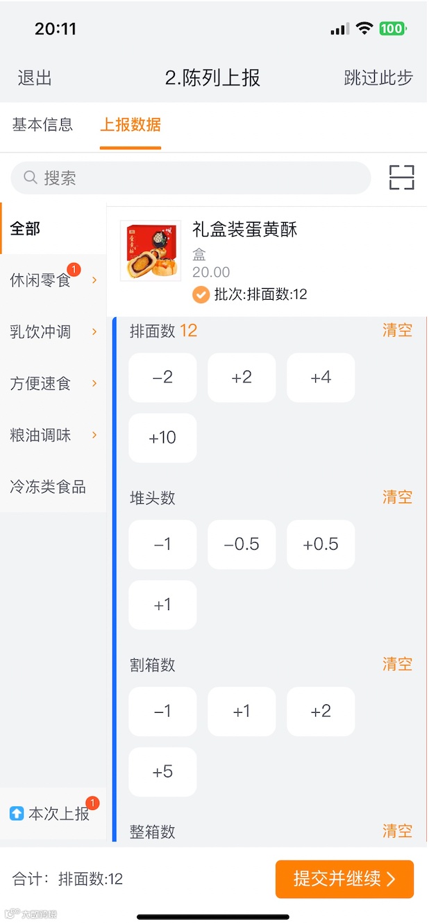 而且计算键盘的键盘数字,是可以根据企业的产品属性实现自定义上报操作的,比如排面数是2的倍数,堆头是1平米或0.5平米等的情况等。如下图: