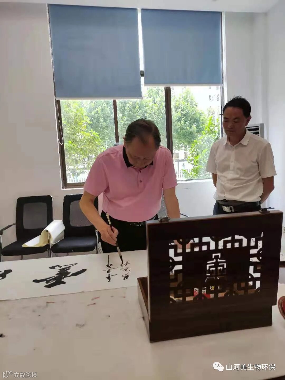 7月5日,原望城县县长、著名书法家易炎煌,湖南省智慧农业产业协会李德兴书记、协会刘记全秘书长一行莅临湖南山河美生物环保科技有限公司指导工作。山河美董事长熊立寅介绍了公司在环保尤其是土壤修复、改良方面的工作成果。