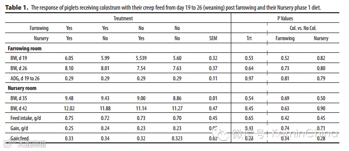 作者最终认为教槽料中添加牛初乳对仔猪体重改善和采食量没有作用(见表1)。