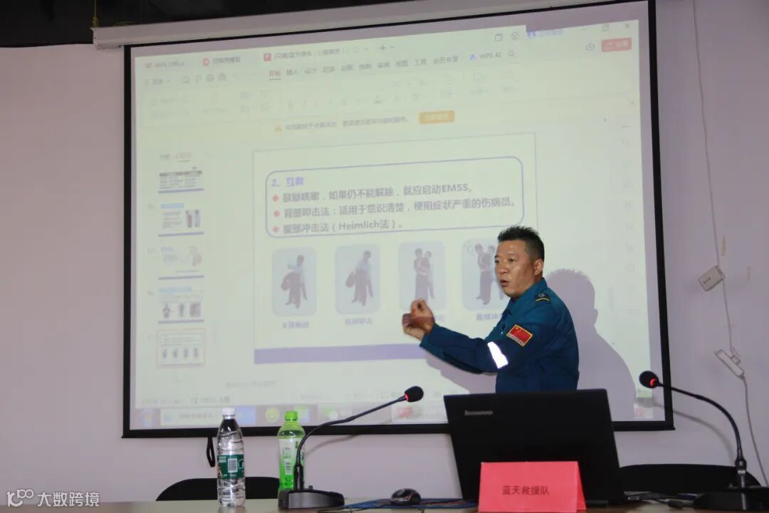 随后,蓝天救援队的专业救援专家带来了防溺水、交通安全等贴合日常生活与工作场景的实用知识。讲解过程中,专家们结合典型案例,将复杂的安全知识转化为通俗易懂的语言,让大家深刻认识到各类安全隐患的潜在威胁。在实操环节,专家们利用训练假人,现场演示心肺复苏、海姆利克急救法的规范操作流程,并邀请环卫工人们上台进行模拟练习。面对踊跃参与的学员,专家们耐心细致、手把手地纠正动作,确保每一个操作步骤都精准到位。现场互动频繁,学习氛围热烈浓厚,大家在实践中切实掌握了关键急救技能。