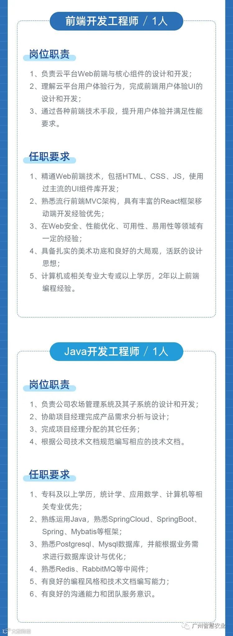 导读:智慧农业现在招以下岗位人才,有兴趣的同学欢迎踊跃投递简历。