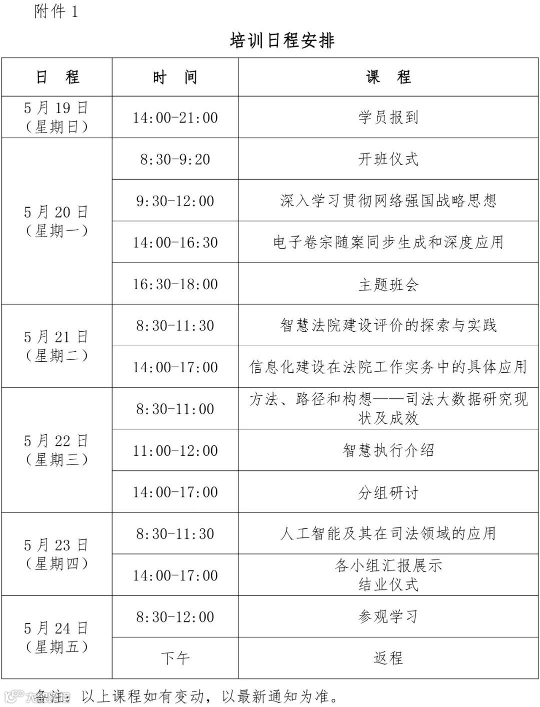 本次培训为集中面授培训,培训日期为5月19日至5月24日,日程安排详见附件。