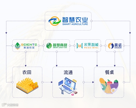 广州市智慧农业服务股份有限公司成立于2015年,领航赛通科技、米果智能、智慧真甜以及晨诺科技等子公司全方位赋能农业产业链,由智慧基地、智慧流通、智慧食堂三大核心版块和农产品价格行情、供应链金融、农业综合服务三项辅助服务共同组成从农田到餐桌的业务矩阵。