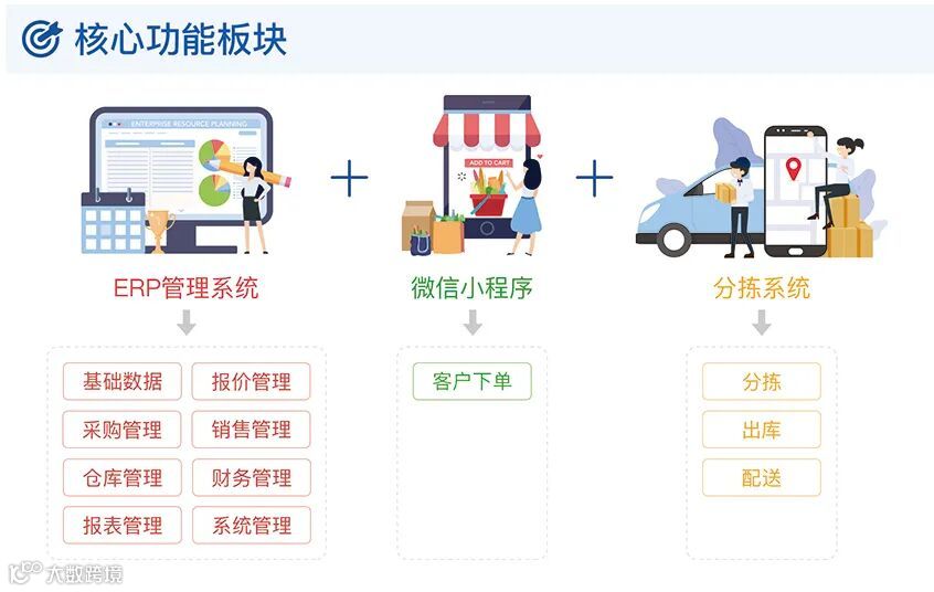 随着这些挑战带来的负面影响不断加剧,生鲜配送流通行业亟需一个系统工具来应对难题——生鲜配送ERP系统,从最初制造行业的ERP衍生至各行各业的资源管理工具,ERP系统得到不断的丰富演变,直至今天发展为生鲜配送行业人人称道的数字化流通系统。