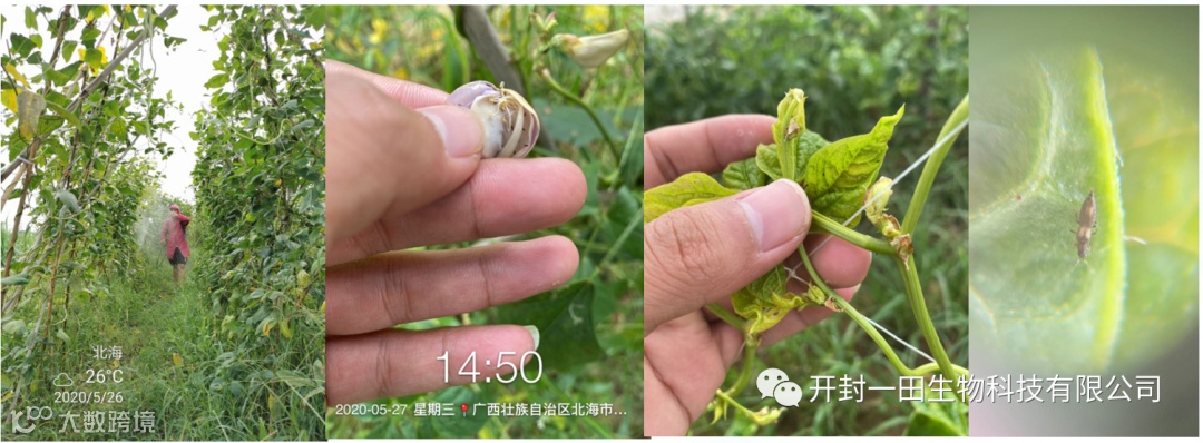 试验目的:验证蓟马诱食助剂在豆角上的效果