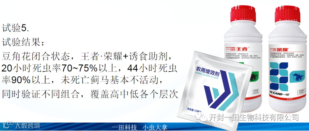 连续5个月,行程3万多公里,足迹遍布广东博罗、增城、开平;广西合浦、南宁;云南昆明;山东莘县等地,筛选试验500多个,确认一系列配方组合,满足不同地区/作物/时期防治要求。