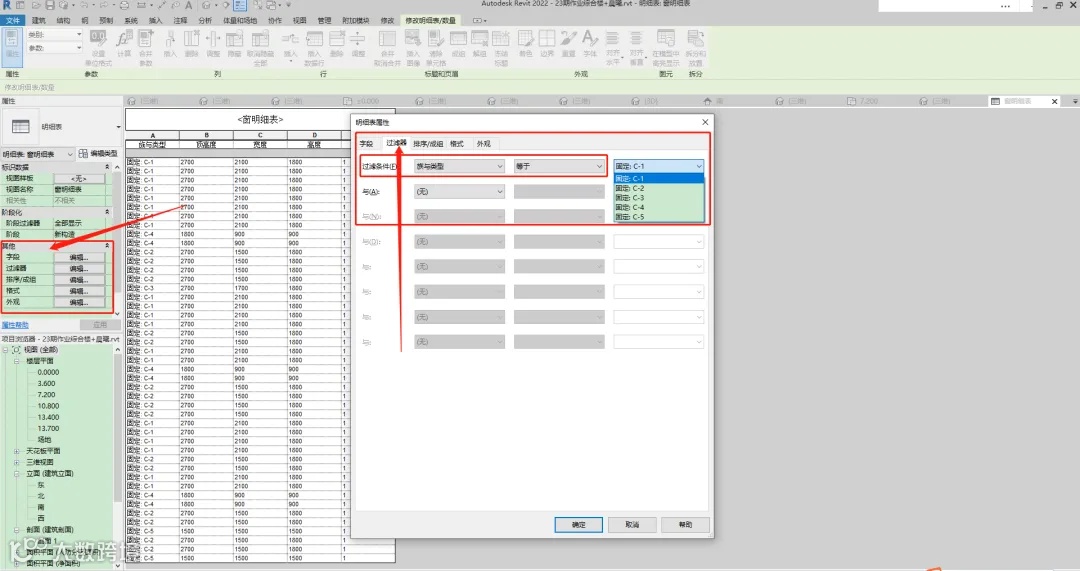 明细表调整可通过过滤器过滤表中需要参数统计量,搭配排列/成组、格式和外观调整形成更加系统的明细表。