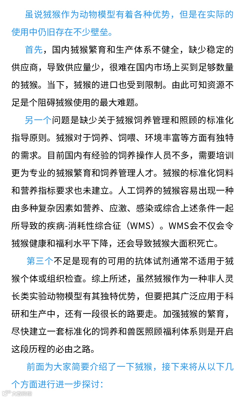普通狨猴(Callithrix jacchus),是原生活在南美州的一种体型较小的非人灵长类动物。十九世纪六十年代,狨猴开始被用于生物医学研究。它们具有体型小(成年狨猴与成年大鼠大小相仿)、易操控、数量多等优势。如今,狨猴已被用于基因编辑、神经科学、行为学、生理损伤、基因治疗和老龄化等多个生物医学领域的研究中。