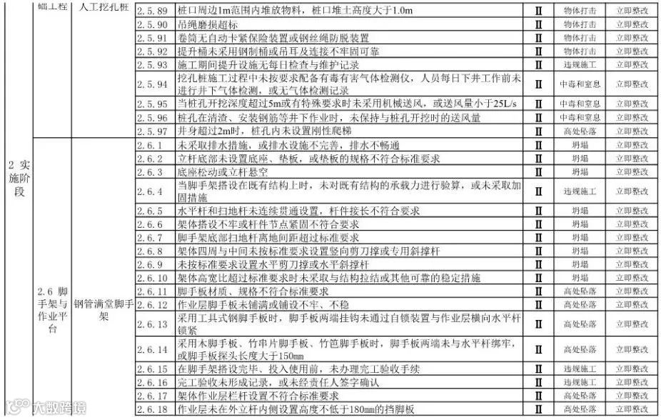建筑施工安全生产风险清单 | 500项